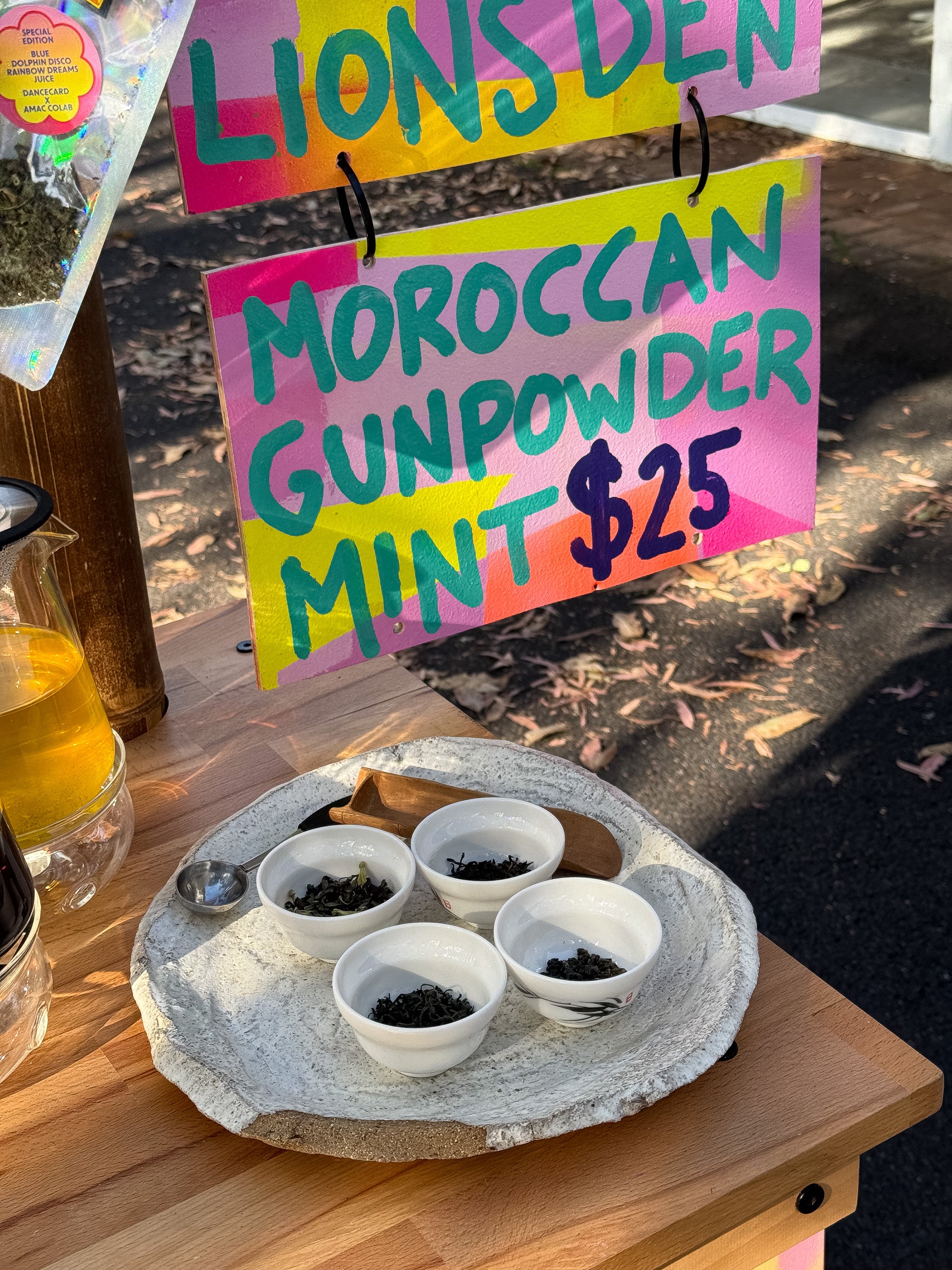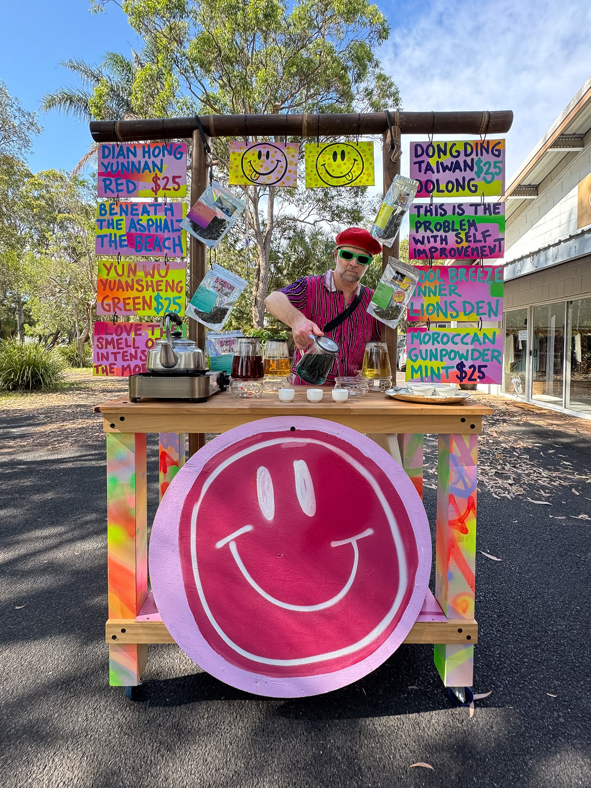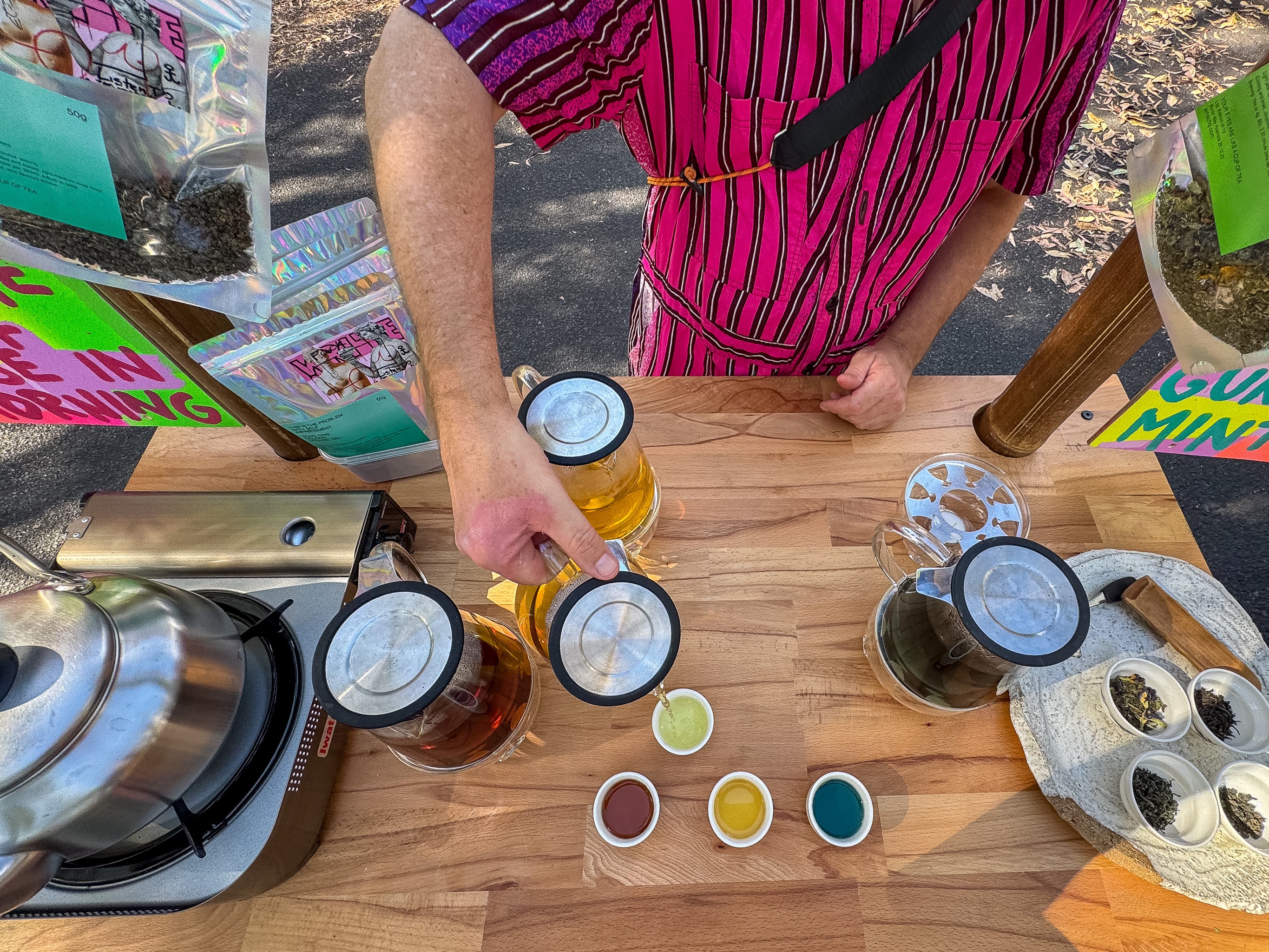 Teahaüs experiences and sessions feature Asphalt Tea - our curated seasonal range of fine teas from around the world, from ethical suppliers, small estates and wild-grown trees. We specialise in red (black) tea, puerh fermented tea (raw and ripe), and tea cakes, all available on our website for your personal rituals. We have created tea and hydration elixir bars backstage at stadiums for the world's leading international touring performers and served thousands of cups of tea to festivalgoers at Splendour in the Craft. We renovated buses into secret teahaüs, beauty salons and conversation zones at Splendour in the Grass from 2014 to 2019. We've brought our micro-mobile, TJ Teahaüs, to the Sunseeker, Dolphin Kiosk at Bacteria Books, and private discos and events across the Northern Rivers of NSW. Experiences range from tea degustations, pop-up tea bars, hydration stations, and tea parties, to "tea raves" that combine delicious tea and mindful practice with curated TJ-ed soundtracks and celebratory energy. Each experience is customised to honour both the ancient traditions of tea culture and the specific needs of the particular occasion and contemporary contexts.