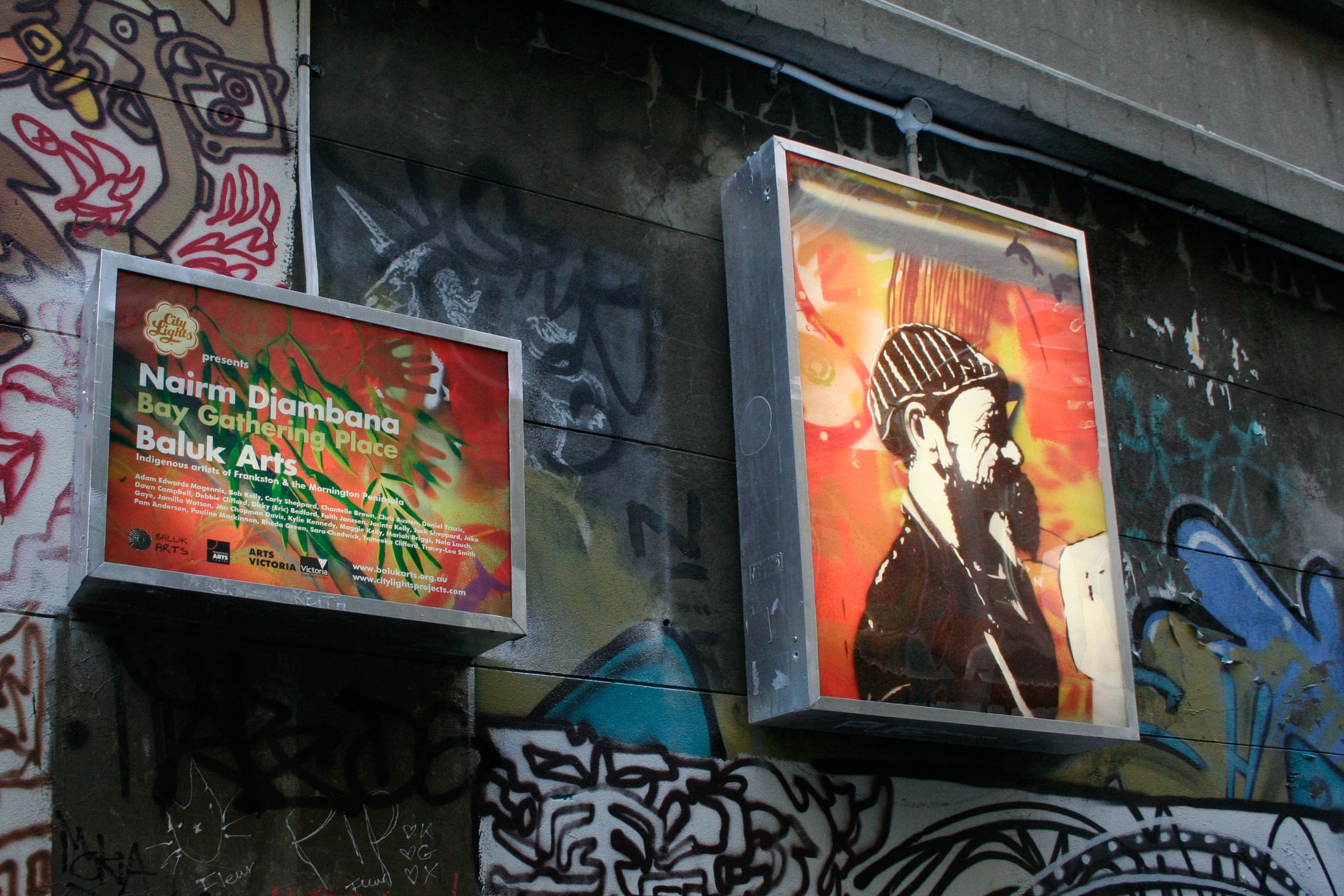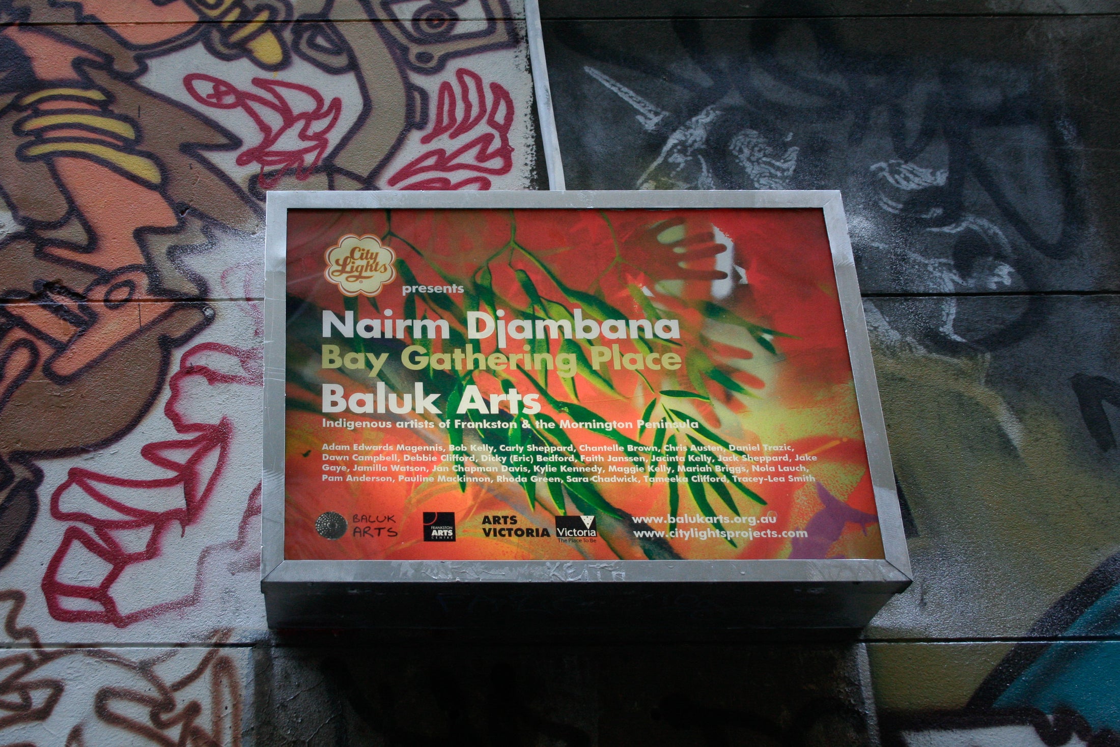 Nairm Djambana is an exhibition of stencil works produced by Frankston and Mornington Peninsula Aboriginal artists in 2009, in workshops commissioned by Baluk Arts and Frankston Arts Centre and facilitated by Amac of Citylights-Until Never.