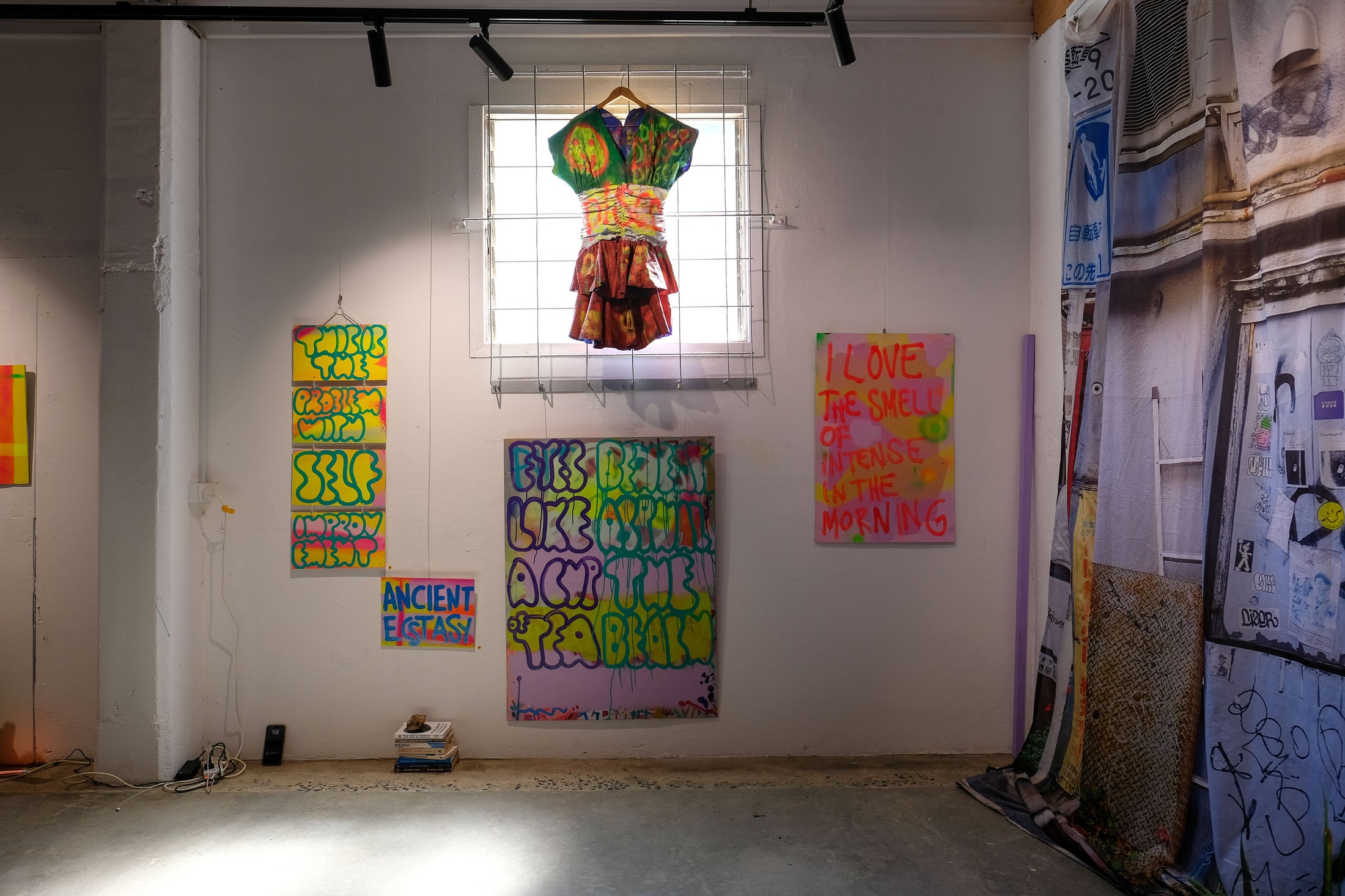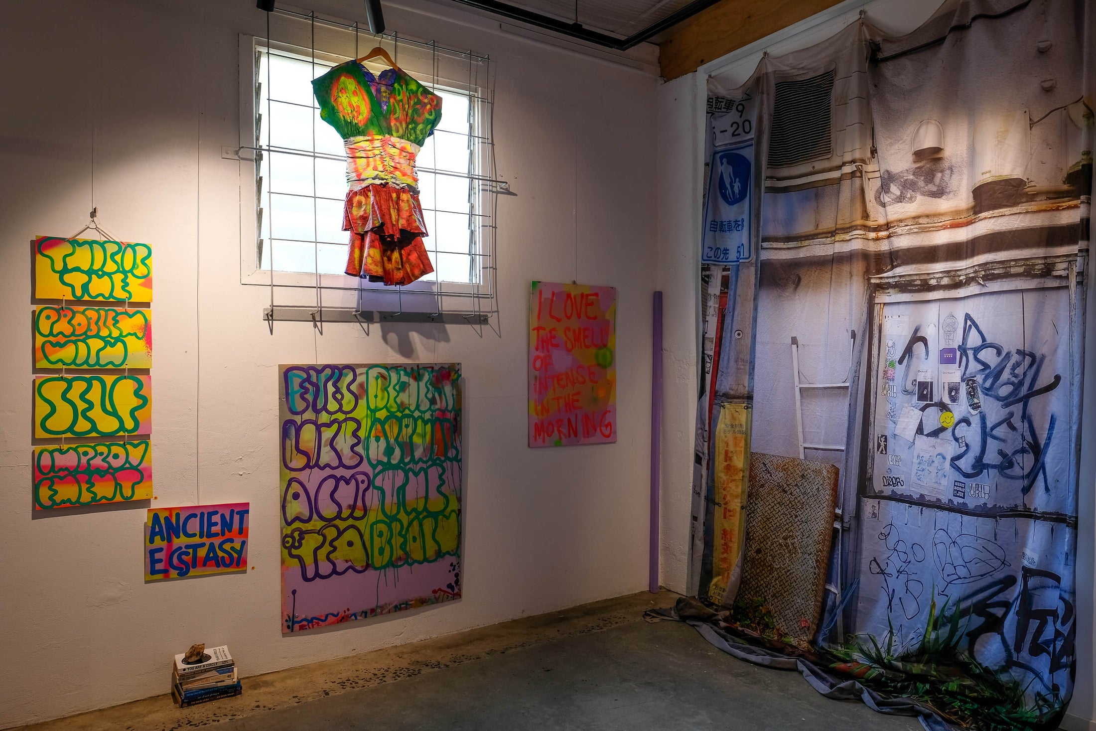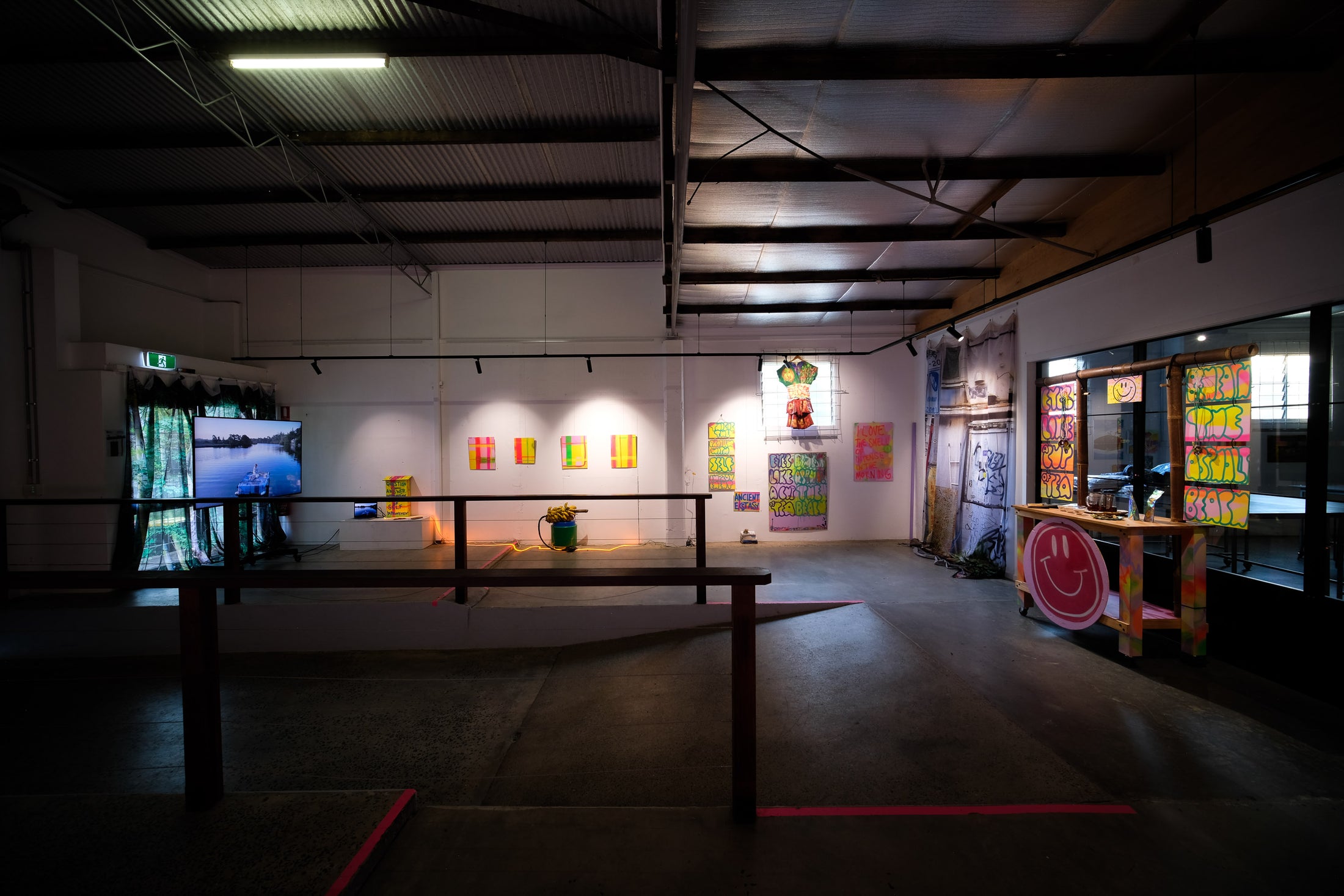 Operating at the intersection of art and cultural archaeology, I started with the question of self-improvement. I followed the LED lights from there, experimenting with new paintings, colour combos, text, tea, and speed reading 50 of the world's best self-help books.