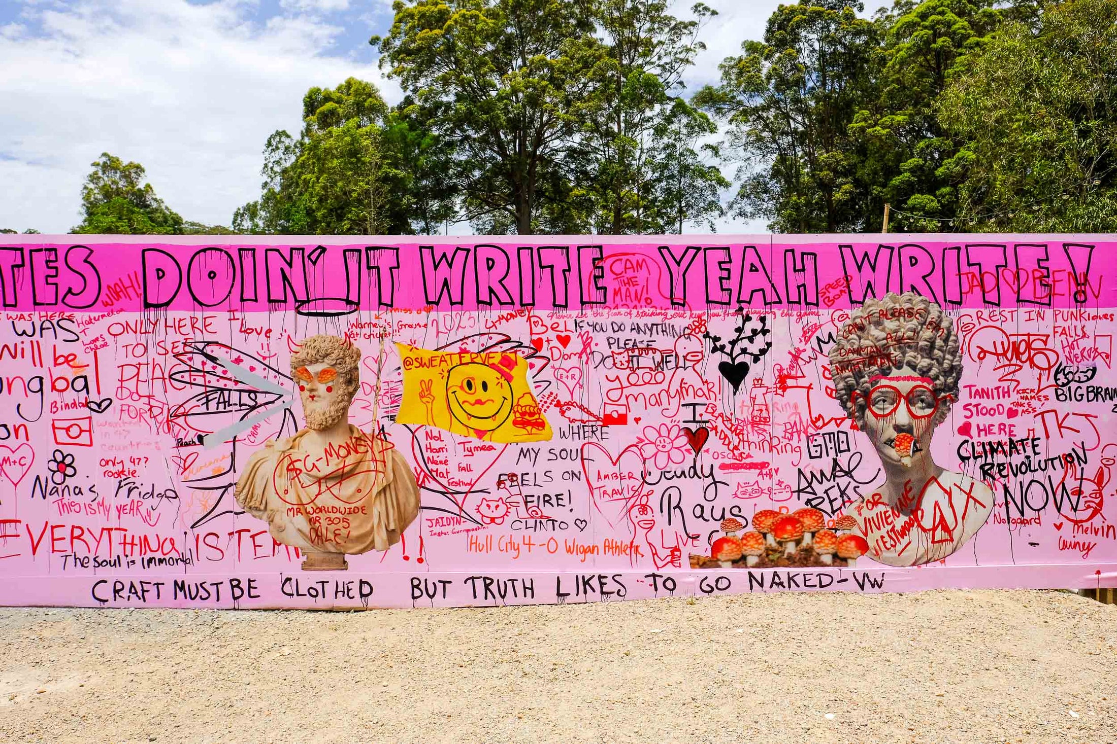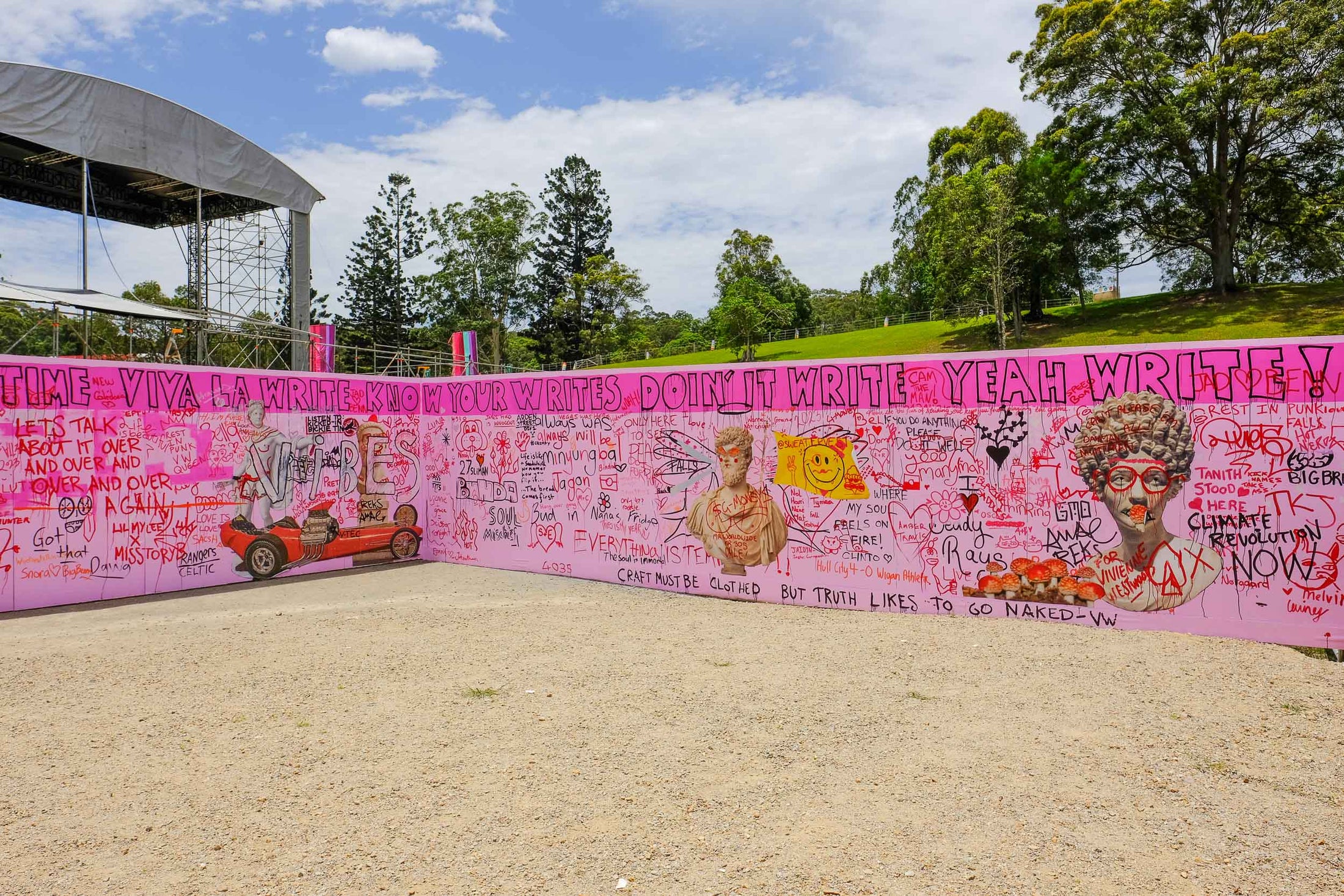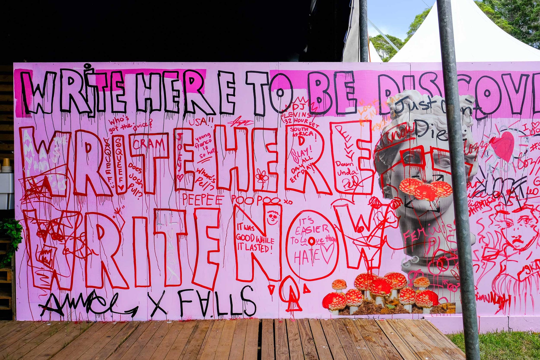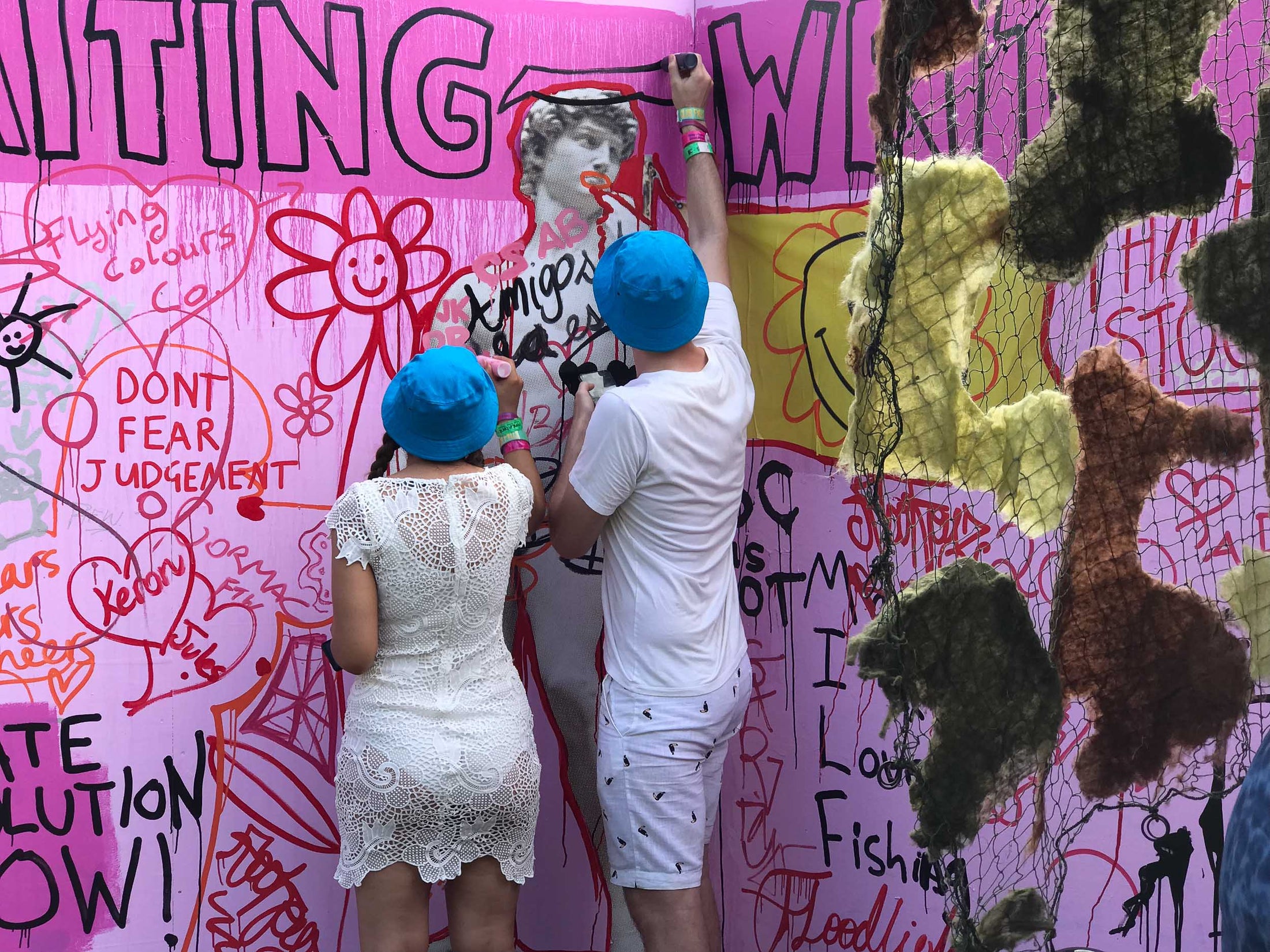 Collaborative participatory wall space for guests at Falls Festival, Byron Bay. A Temporary Autonomous Zone.
